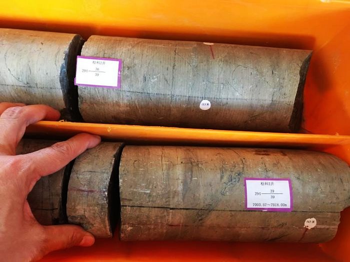 图为:松科二井在7003.57米——7018米钻获的地球深部岩心标本