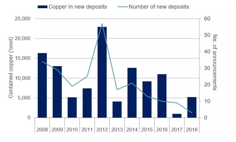 近年全球新增储量、新增矿床数量变化