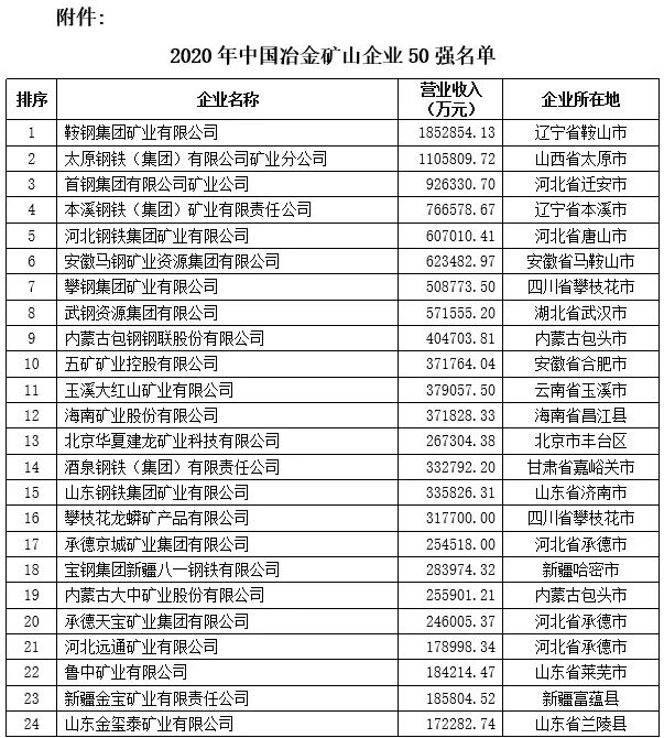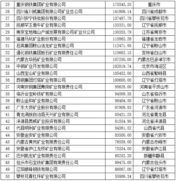 虽然环保限产一定程度上导致铁矿石需求受限,但钢厂利润仍处于历史高位,后市钢厂产量增加已是不争的事实,在需求好转、库存偏低的条件下,后市随着成材旺季进一步去库,铁矿石价格也将震荡走强。未来一段时间,铁矿石价格的上涨势必压缩钢铁企业的利润,整个产业链的利润也将转移到上游矿山,作为全球最大的铁矿石进口国和钢铁生产国,也将面临巨大的压力。4月7日,中矿协发布了《2020年中国冶金矿山50强》,作为国内冶金矿山的代表企业,在提高我国资源保障能力、市场竞争能力和可持续发展能力等方面具有重要意义。