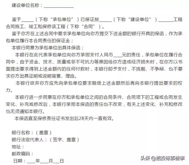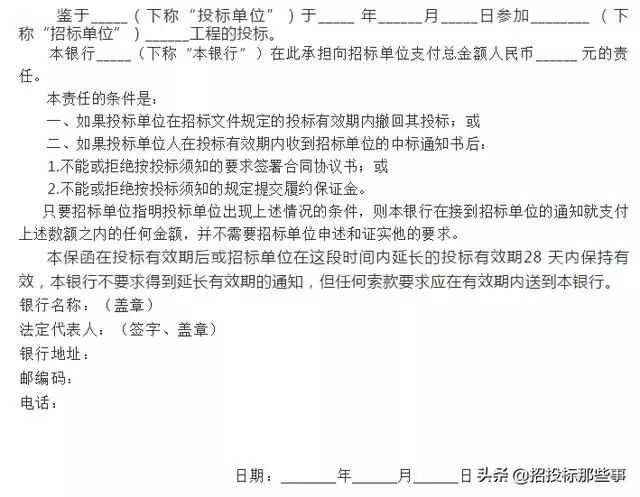 12.2 根据投标单位的选择,投标保证金可以是现金、支票、银行汇票。也可以是在中国注册的银行出具的银行保函,银行保函的格式,应符合招标文件的格式,银行保函的有效期应超出投标有效期28天。
