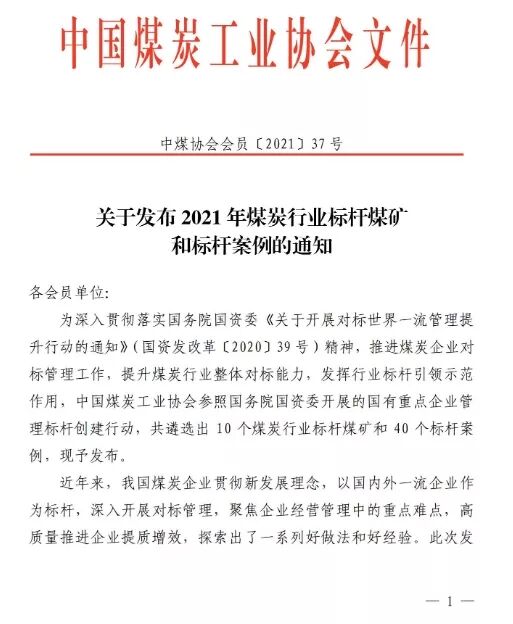 祝贺!10座煤矿、40个案例入选煤炭行业标杆!
