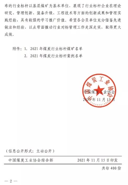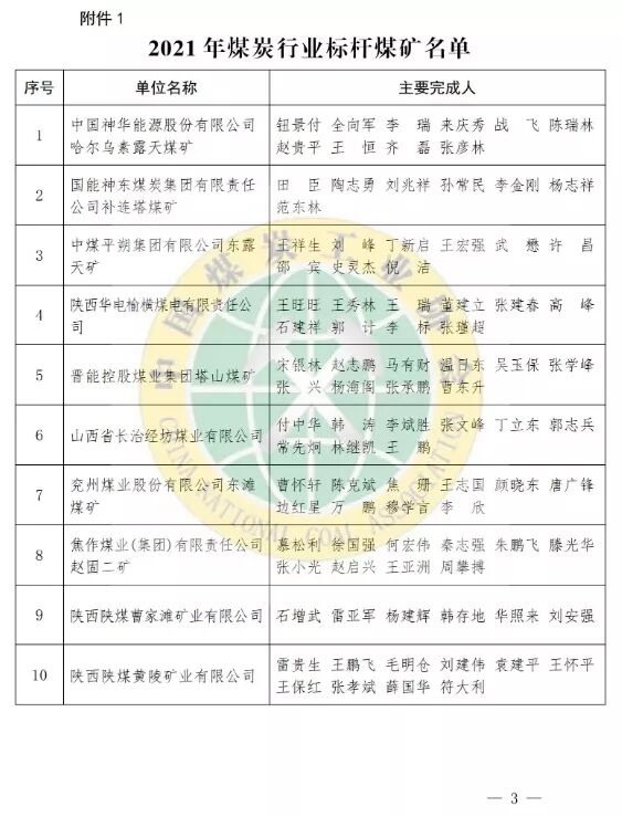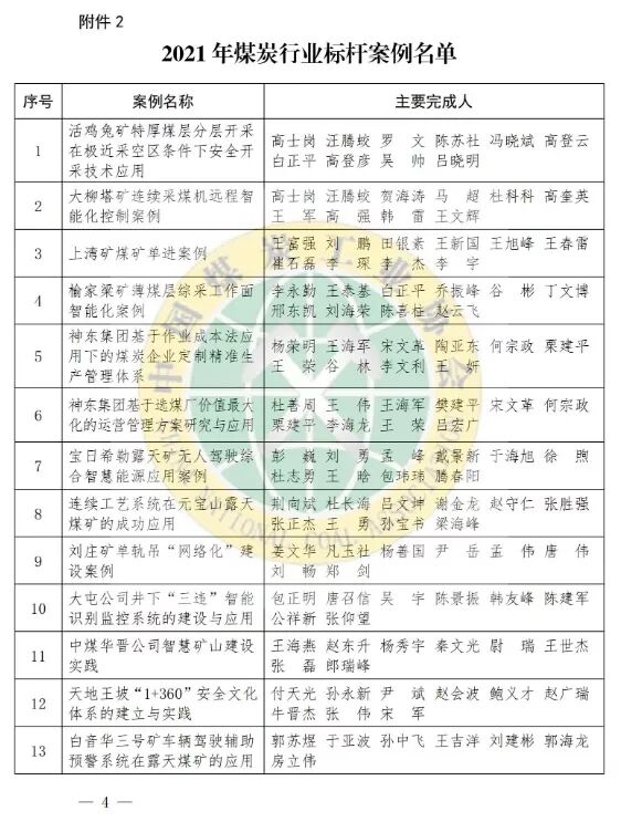 2021年煤炭行业标杆煤矿和标杆案例。