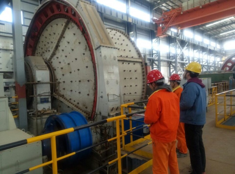 2月24日上午,铜冠(庐江)矿业公司选矿车间半自磨机电机经过调试,空载试车一次性顺利完成。图为该公司专业技术人员会同电机厂家技术人员进行电机调试。□王树辰 陈正育 摄影报道
