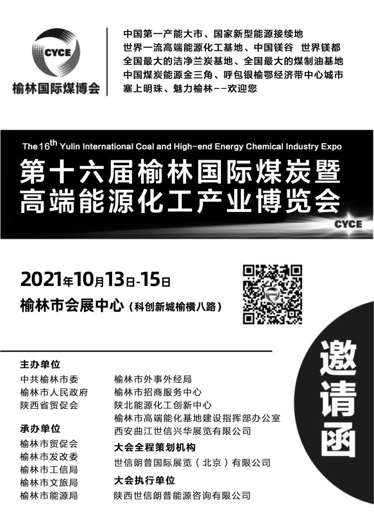 为深入贯彻落实以习近平新时代中国特色社会主义思想,充分展现“十三五”以来贯彻落实能源安全新战略的工作成绩,分析把握“十四五”能源发展的新任务新要求,推进能源供给侧结构性改革,不断优化能源供给结构,推动能源绿色转型发展,推进能源清洁低碳高效利用,坚持创新驱动发展,助力能源企业补齐产业链安全短板,促进我国煤炭工业高质量发展,为能源企业提供一个开放交流的平台,充分发挥政府职能,由中共榆林市委、榆林市人民政府、陕西省贸促会等单位主办的第十六届榆林国际煤炭暨高端能源化工产业博览会,将于2021年10月13日-15日在榆林市会展中心隆重举行。