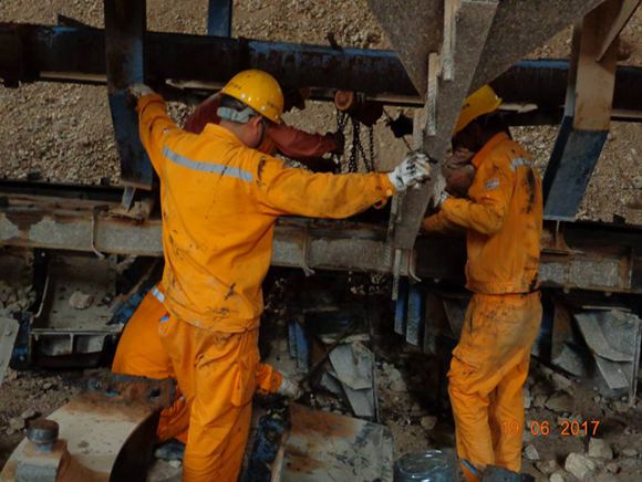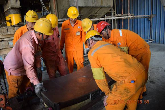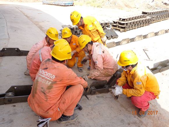 “斋月”期间水泥销售不旺,为开斋节后水泥销售高峰做准备,业主要求项目部运行一、三线熟料生产线,同时对二线进行大修。时间紧、任务重,又是高温天气,项目部精心组织,合理排班。维修人员每天从早7点一直忙到晚7点,在保证安全的同时从没有落下工作进度。车间内温度很高,即使不停吹风扇,也驱不散炎热。很多设备不能在车间内维修,维修工人们就只能在露天作业,火辣辣的阳光直接照在身上,汗水湿透了工作服,手套能拧出水,眼镜上也沾满了汗珠,但他们始终坚守岗位,挥汗如雨。