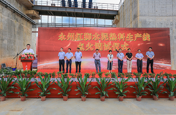 东安县人大副主任黄敏、项目建设指挥部副指挥长谢卫国、芦洪市镇相关领导,集团班子成员、江西区域总经理章经忠、江西区域副总经理赵大秋、永州红狮总经理胡文超等出席仪式,参加仪式的还有施工建设单位、设备调试厂家技术人员等。点火调试仪式由赵大秋主持。