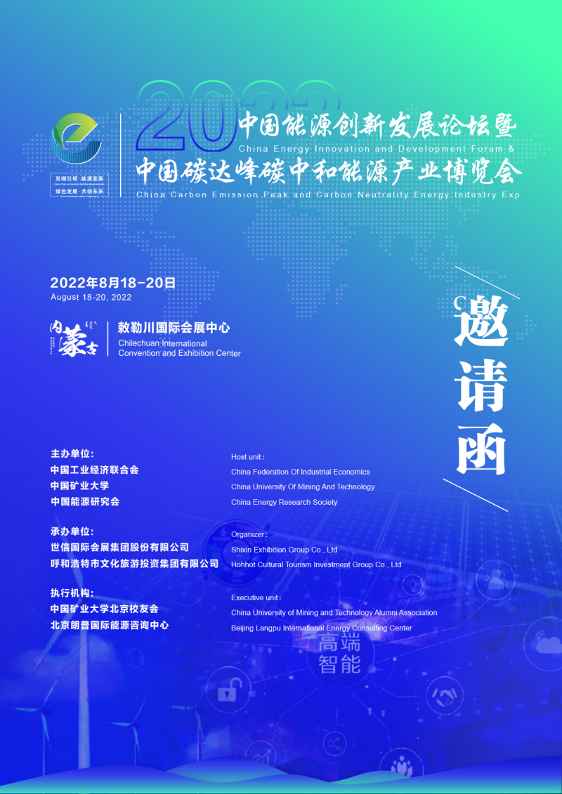为充分发挥内蒙古能源资源富集、产业基础雄厚、支撑条件较好等优势,助力推动我国构建清洁低碳能源体系,进一步扩大合作、共享智慧,高质量推动碳达峰碳中和目标实现。在国家能源局、国务院发展硏究中心的支持指导下,由中国工业经济联合会、中国矿业大学、中国能源研究会联合主办的 “2022中国能源创新发展论坛暨中国碳达峰碳中和能源产业博览会”定于2022年8月18日至20日在内蒙古敕勒川国际会展中心隆重举行。大会系列活动包括:内蒙古国际太阳能光伏技术与装备展览会、内蒙古国际风力发电技术与装备展览会、内蒙古国际氢能与储能装备制造业展览会,同期举办中国能源创新发展论坛下设的7个分论坛(绿色低碳发展论坛、碳汇碳交易论坛、氢能与储能论坛、煤矿智能化论坛、煤炭清洁高效利用论坛、高端智能装备制造业论坛、校友经济协同创新发展论坛)以及招商引资推介和重大项目签约等20余场平行会议及论坛,大会将邀请3000余家国内外知名能源行业领军企业、科研院所、高科技企业、高新技术企业参展、参会。
