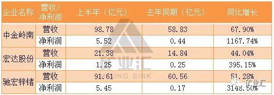 由于上半年锌价上涨,涉锌企业上市公司净利润大涨,其中,中金岭南上半年净利润5.5亿元,同比增长1167.74%;驰宏锌锗同比增长3148.5%,;宏达股份净利润1.25亿元,同比增长395.15%。