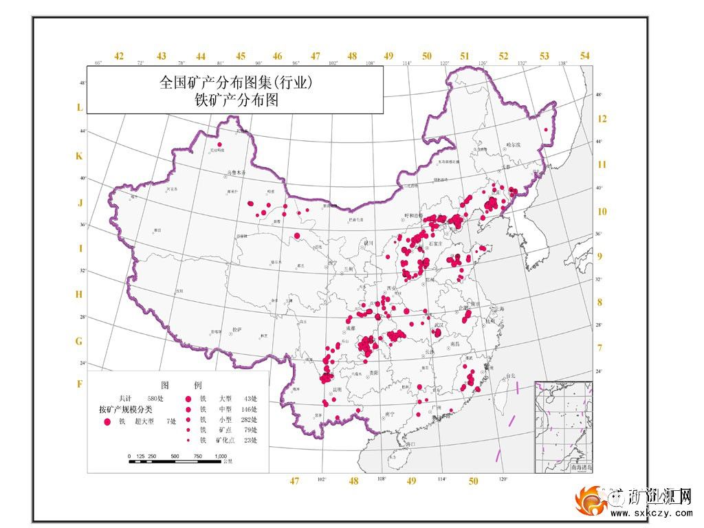 从地区分布来看,中国铁矿石主要分布在东北鞍本矿区,华北的迁滦矿区和邯邢矿区,华东地区有安徽芜湖至江苏南京一带的凹山,南山、姑山、桃冲、梅山、凤凰山等矿山,以及山东的金岭镇等。中南地区铁矿以湖北大冶铁矿为主,其他如湖南的湘潭,河南省的安阳、舞阳,江西和海南岛等地都有相当规模的储量。