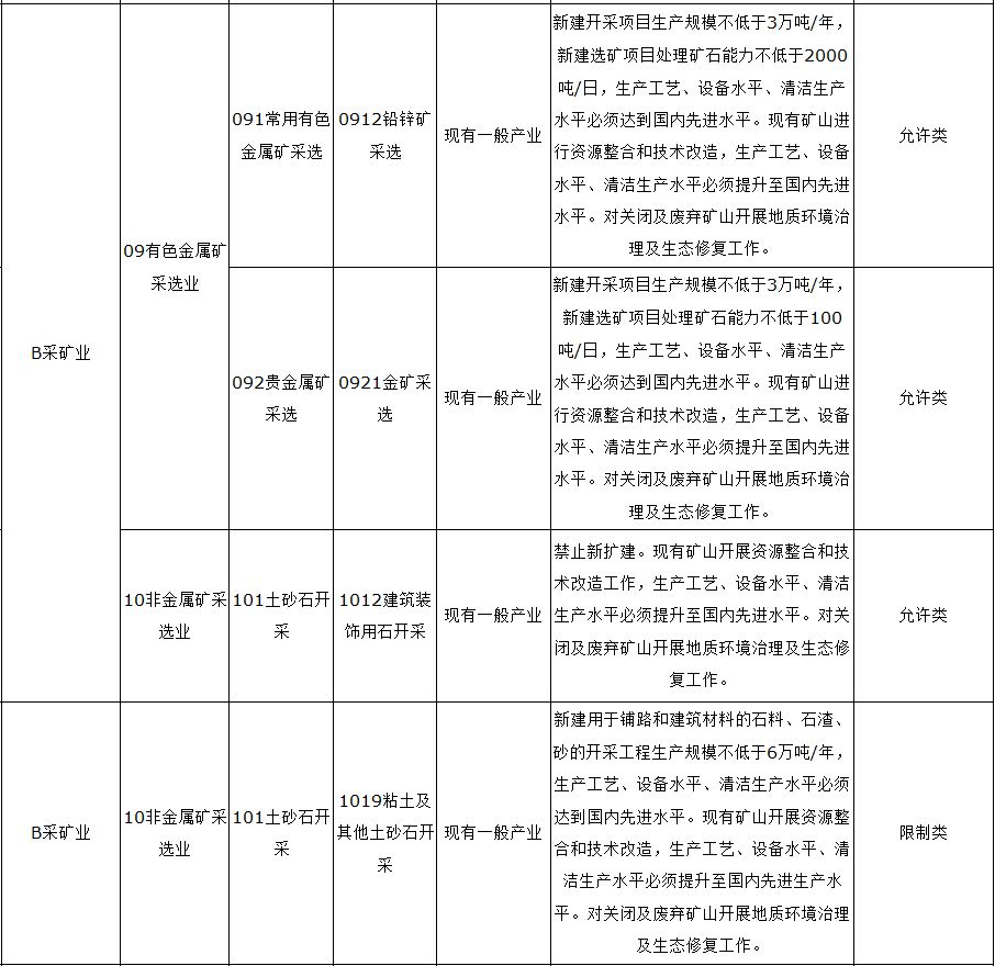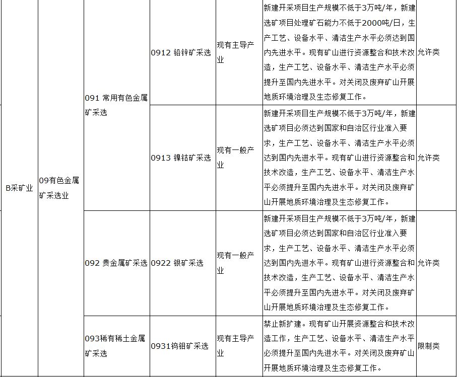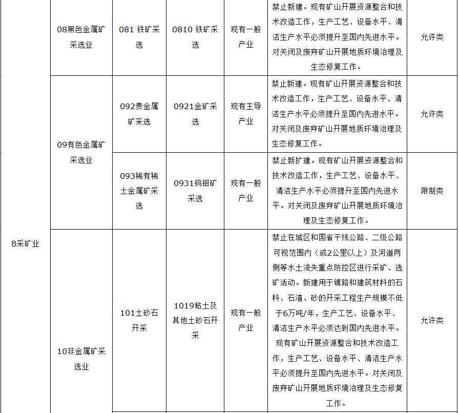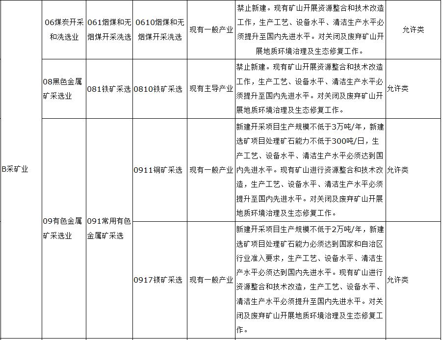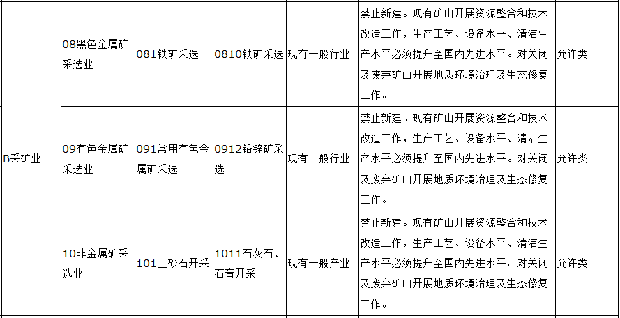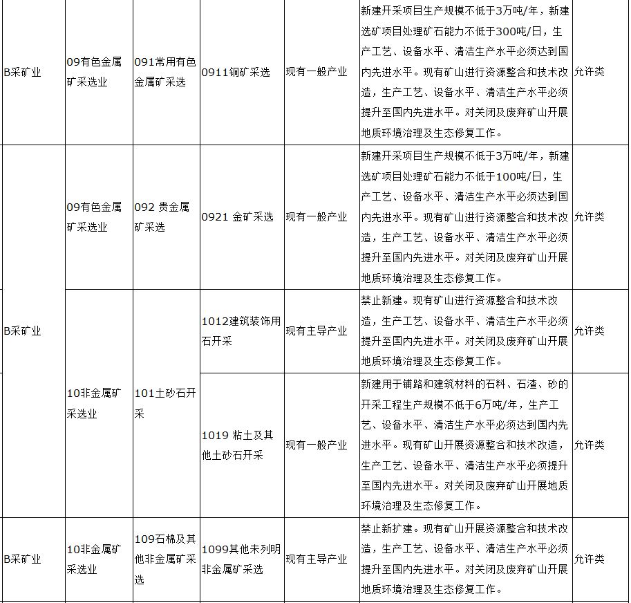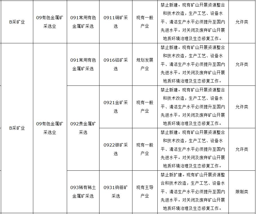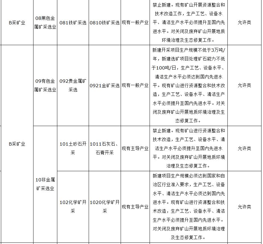 从43个旗县禁止或限制产业目录进行初步总结,铁矿、煤炭的采选和下游的钢铁延压、炼焦、火力发电,土砂石开采、水泥等建筑材料是受冲击最大的行业,几乎全是禁止新建。有色金属中的铝、铜、铅锌、贵金属等开采或延压加工次之,部分旗县禁止新建,也有部分旗县通过规模进行限制。